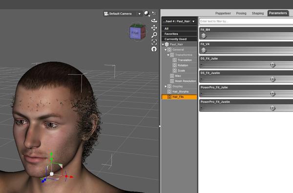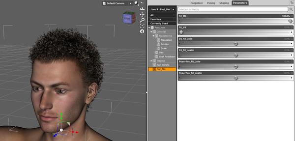 Also the morphs for the hair are located at the neck, so you have to be sure to click on the neck for the parameters to fit or shape it.