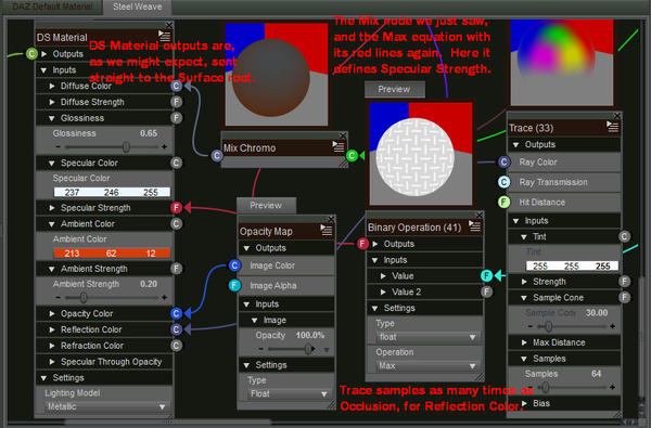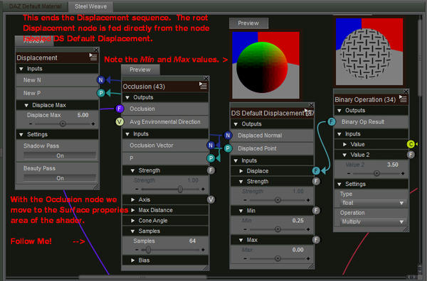 Here I bring down the Occlusion Node seen above, and show what it's used for.