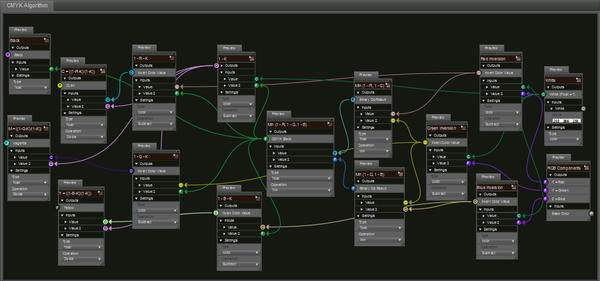 No--- not blessed to be a collaborator (unless it's someone else copying my putzing). I just translated the RGB - CMYK algorithm from this CodeProject page into a nodular equation. I found that via the WikiPedia article on the CMYK Color Model(which I'd bookmarked).