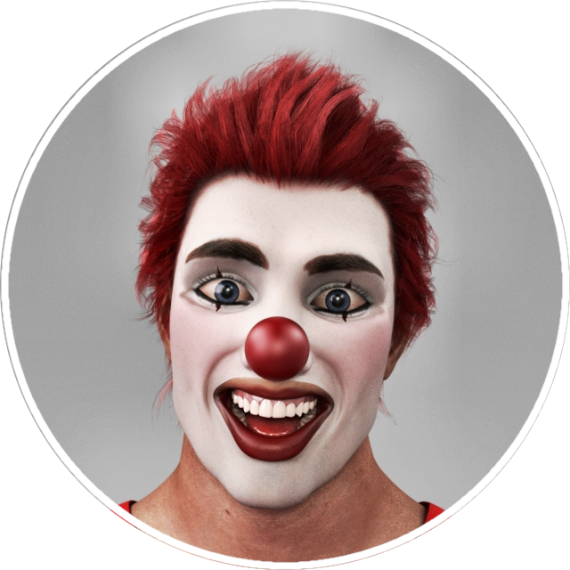 Thank you DollyGirl! Yes, made the clown's face myself, painted it directly on G8M's Base Materials (nothing more than a white overlay basicly) and used April's Flo Makeup for the lips and Cherubit's Cute L.I.E. Makeup for the eyeliner and the blush. The nose is, just like Faeofthe3rdDimension did, a sphere primitive with an adjusted Iray car shader by Tom2099. Check out my second entry in the October 2019 challenge... ;) And yes again, I like Mystical Flowers by MysticArtDesign very much, I fell in love with Promo picture #5, the roses, so beautiful!