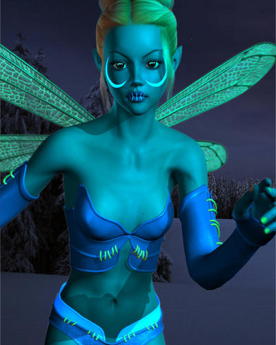 Since the scene is so dark, I wonder if this would look more magical and feminine if more ambience was used on the textures and soft glow effects in post were applied?