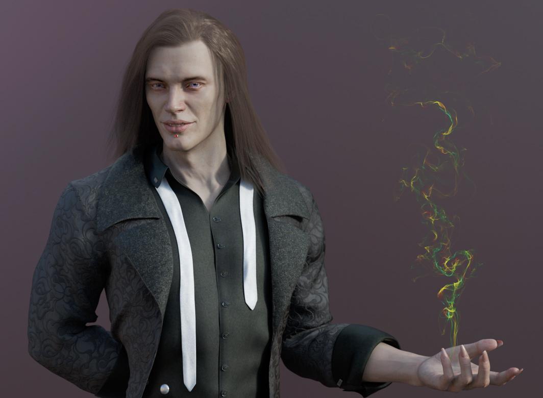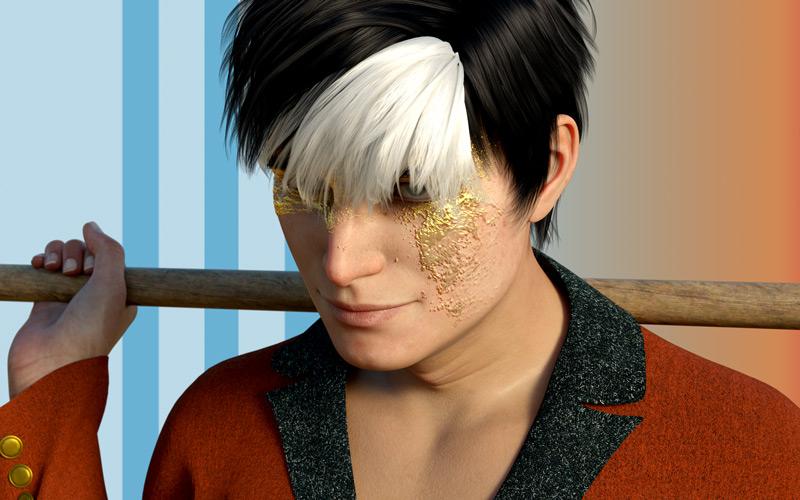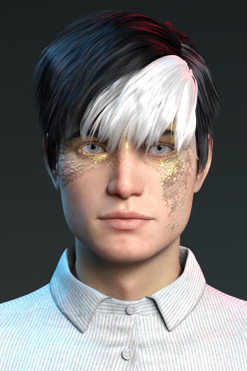 Pyrit Hair is still a colossal pain in the arse. It also used to be Alex's hair, but autofitting it to G8 makes it go even more nuts than it does already so I'd mentally consigned it to the vault, but there isn't really another hair these days that matches it well. (No one needs to know the hoops I went through to update Alex's...) This time I just parented it to Kir's head (I moved him into the hair, rather than the hair onto him; it was weirdly easier).