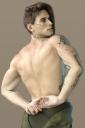 (Why do those subtle scars on his torso make me feel... excited?)