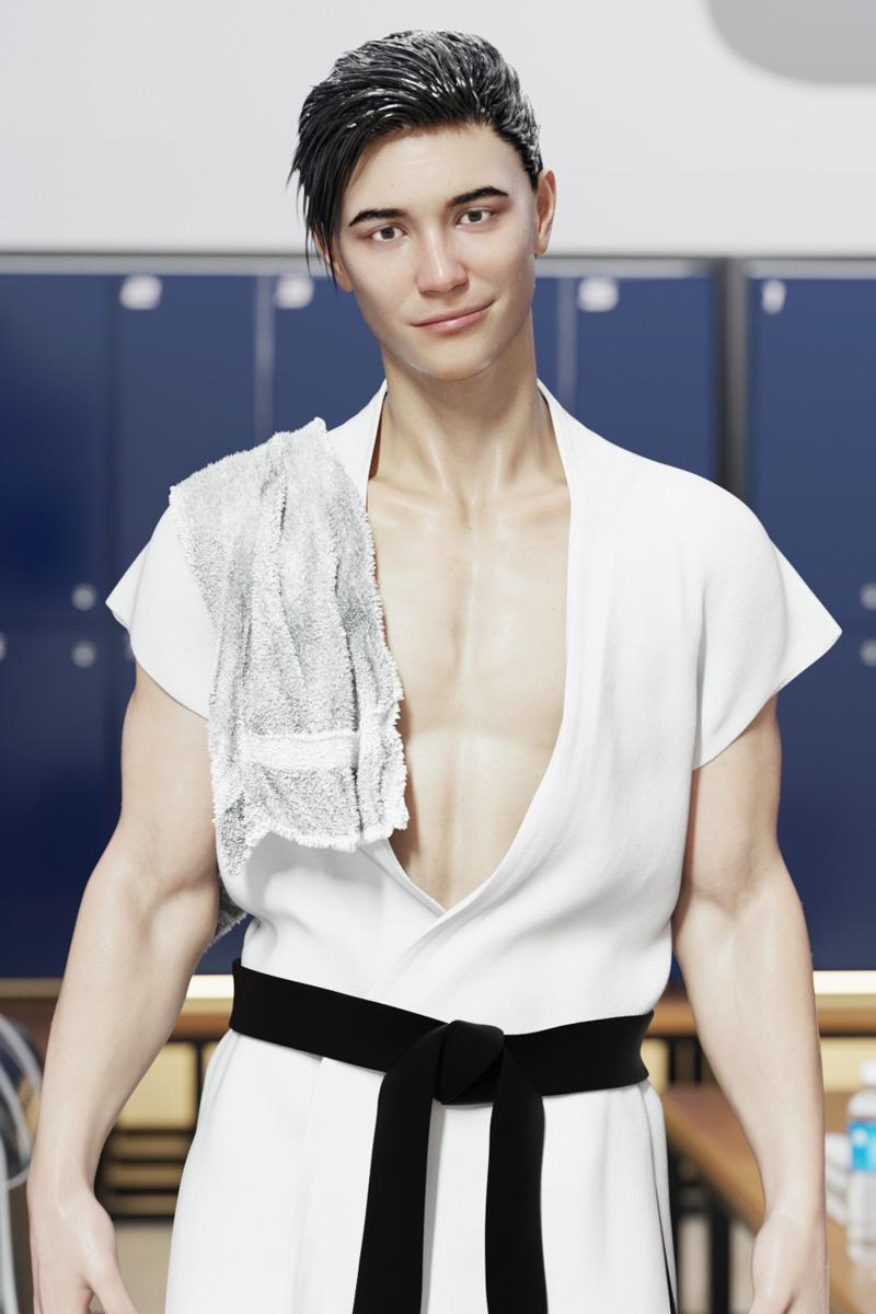 He really fits in everywhere! I'd bough the dForce Elegant Slit Skirt for the top, but the skirt itself looks really nice too, and I bought the dForce HM Almira Outfit for the pants. I really love vendors who remember the masculine characters for their G9 clothes and skins.
