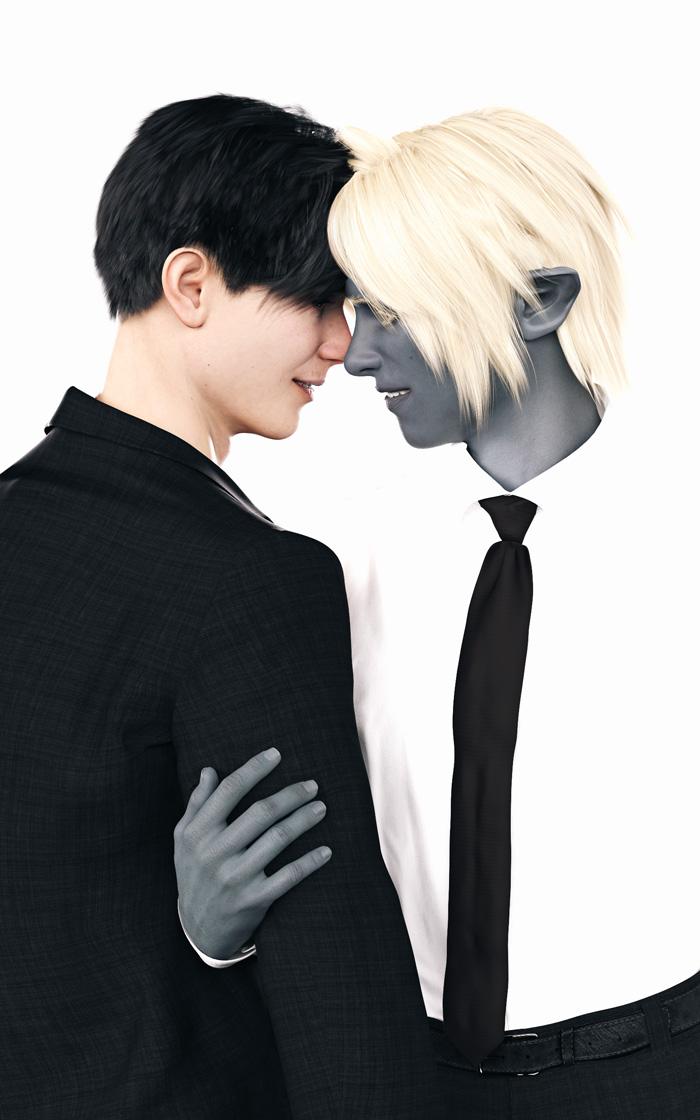 I updated the cover of the one Alex and Milos story I managed to publish (because it's short, unlike the other, uh... six?). The previous one was fine, technically, but something about it made me feel creepy and I still can't put my finger on what. It's not even that Alex looked possessive in it, because he is, he freely admits it, and Milos likes it. Either way, I managed to get a similar pose that looked sweeter and I'm much happier with the full effect.