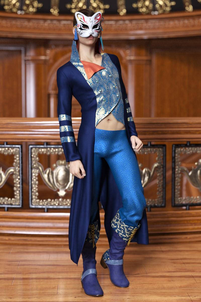 Another one of Zero. I spent ages fiddling around with the atmosphere cube I made behind him... and only when I finished did I remember I had a Kindred Arts product that would do exactly the same thing without the swearing and re-rendering... It turns out the dForce Cocktail Dress makes a nice shirt, and the dForce Virtual Assistant Outfit has some really nice, albeit slightly short, trousers.
