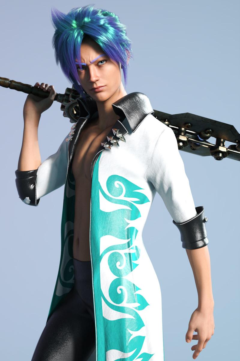 I spent a significant chunk of G8 fiddling with his model and textures, and apparently that trend is going to continue with G9. Here he's got Joan's normal and SSS maps (they're not only very good, but suit a 26-year-old man very well) and Mousso and justspitey's Nabi and Minjun textures. And Thadeus Hair, which looks very good on him! I can't keep on using his three-raccoons-in-a-trenchcoat solution, and I tried it on a whim only to find it actually has morphs to get it almost where it should be, and dForce assisted the rest of the way. (I've now invested so much time in trying to find other solutions that it would probably have been quicker to just get into the hair editor myself at this point. Maybe when I have the time, and patience, and...)