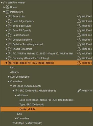 If you want your fix to be dependant on the bend of the head, note which axis of rotation that is. Right-click on that rotation (bend?) in Parameters and select Edit Mode. A little button appears to the left of the dial.
