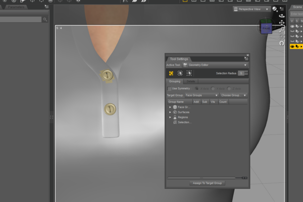 Anyways I was thinking about applying the earring method of not reacting to full body morphs to the buttons so they wouldnt get deformed. But either this method cant be applied to them or I´m doing something wrong. Or my Daz Studio is not up to date but I think it should be. Its 4.6 Pro.