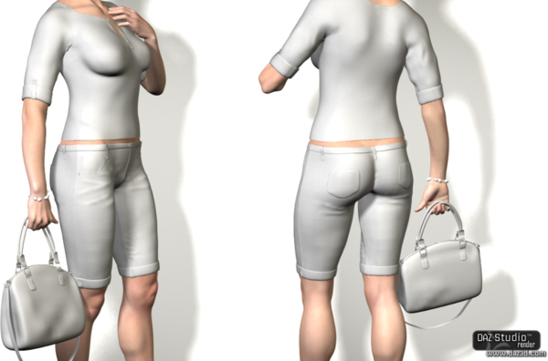 The outfit includes a top with medium length sleeves, shorter jeans, a pair of earrings, a bracelet, a purse and the final version should also have a pair of shoes which I didnt get to yet. Feel free to leave a comment!