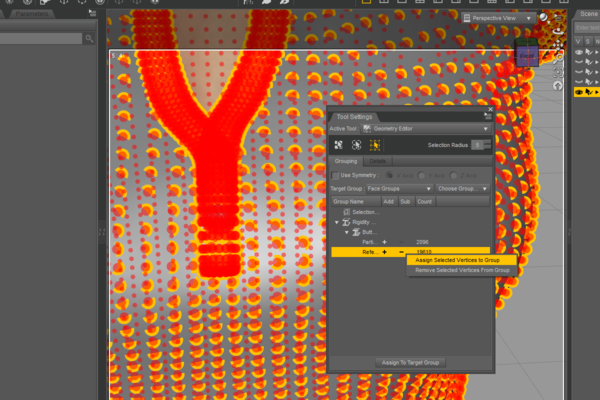 Then I clicked on vertex selection and had to select them again or it wouldnt let me assign them to the participants group. (pic 2)