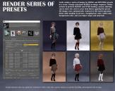 Easily render a series of images by MIXING and MATCHING presets in a scene. Change selections DURING an image sequence. Define actions to perform BEFORE and AFTER loading a preset, allowing you to select the correct scene item before applying the preset. Render material changes, shape changes, pose changes and more. - Render a Series of Scenes
