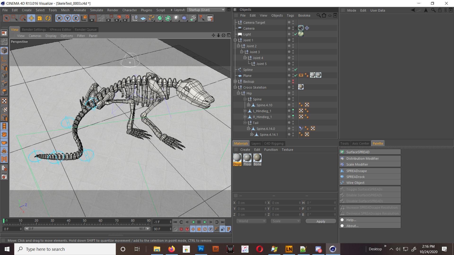 But, I do have something to share!  I modeled myself a little croco skelleton (based on a little figurine I got at Safeway last month)  and spent maybe, two and a half hours modeling it and then half an hour or so fighting with the Spline IK on the tail (I still don't understand what I did to make it work...)  and then here it is :D