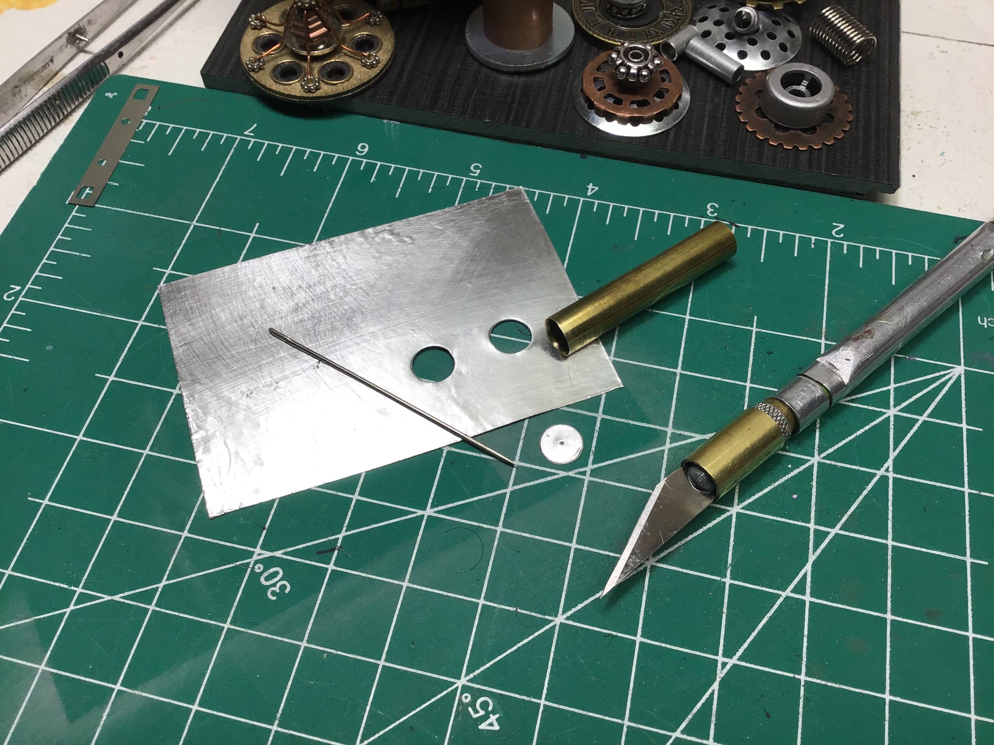 I use tube punches because it's easy and doesn't leave behind adhesive residue on the punch head like it would on a cylindrical punch or hand punch... tube punches can be made out of old telescoping radio antennas... some dollar store like Dollar Tree sell telescoping inspection mirrors and magnetic grabbers which are basically a radio antenna with a dodad on the end. They can be disassembled for the tubing... and the ends sharpened by running an Exacto blade around the inside.
