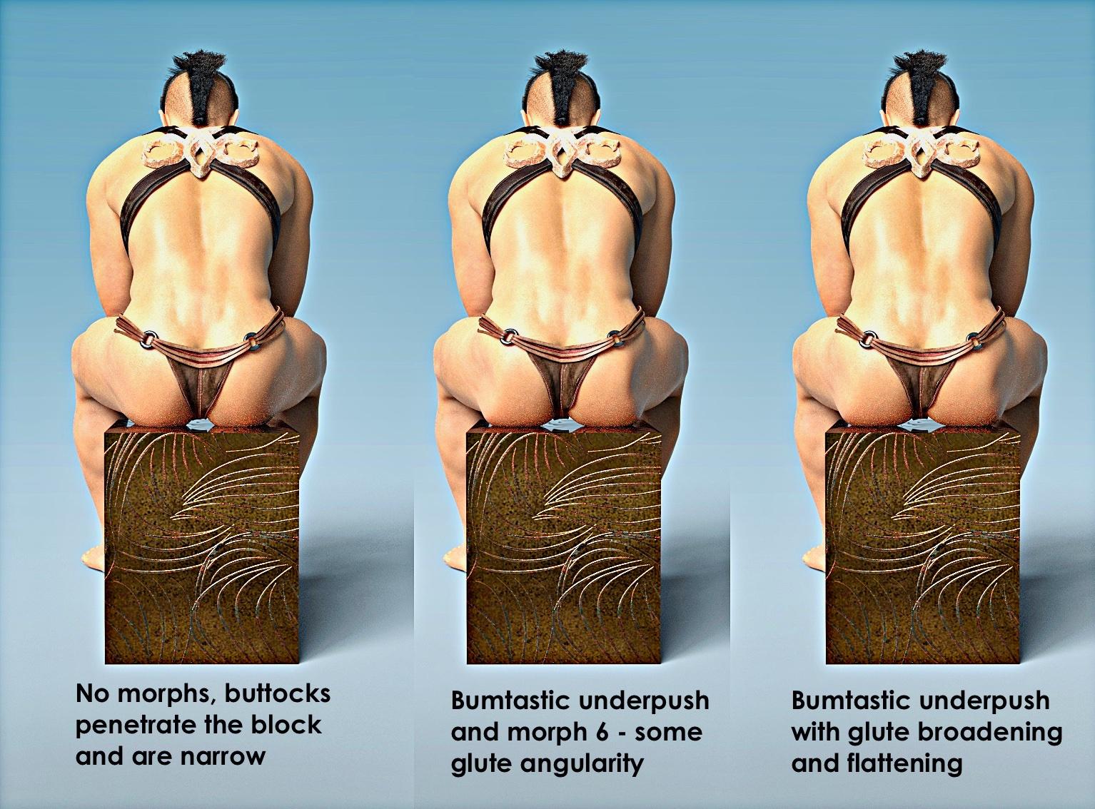 The product is a series of morphs/poses. You probably want to access them through th shaping tab Actor>Hip>Real World>Bumtastic> and enter a value for underpush to get flattening. If you need more flattening, you can click on the shiping morph's gear and change the top limit from 100 to 150%. The poses are also accessible as a straight forward pose in the pose folder. Give me 20 min and I will alter the render I am doing to show you the effect.