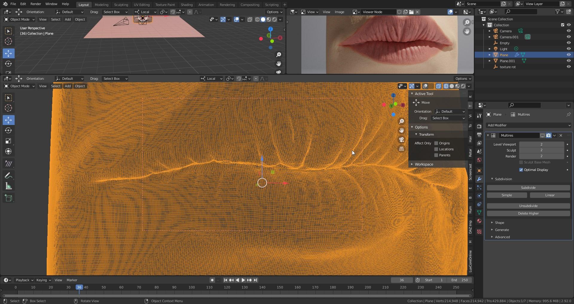 the skin itself has some procedural bump added, the lips are 100%mesh