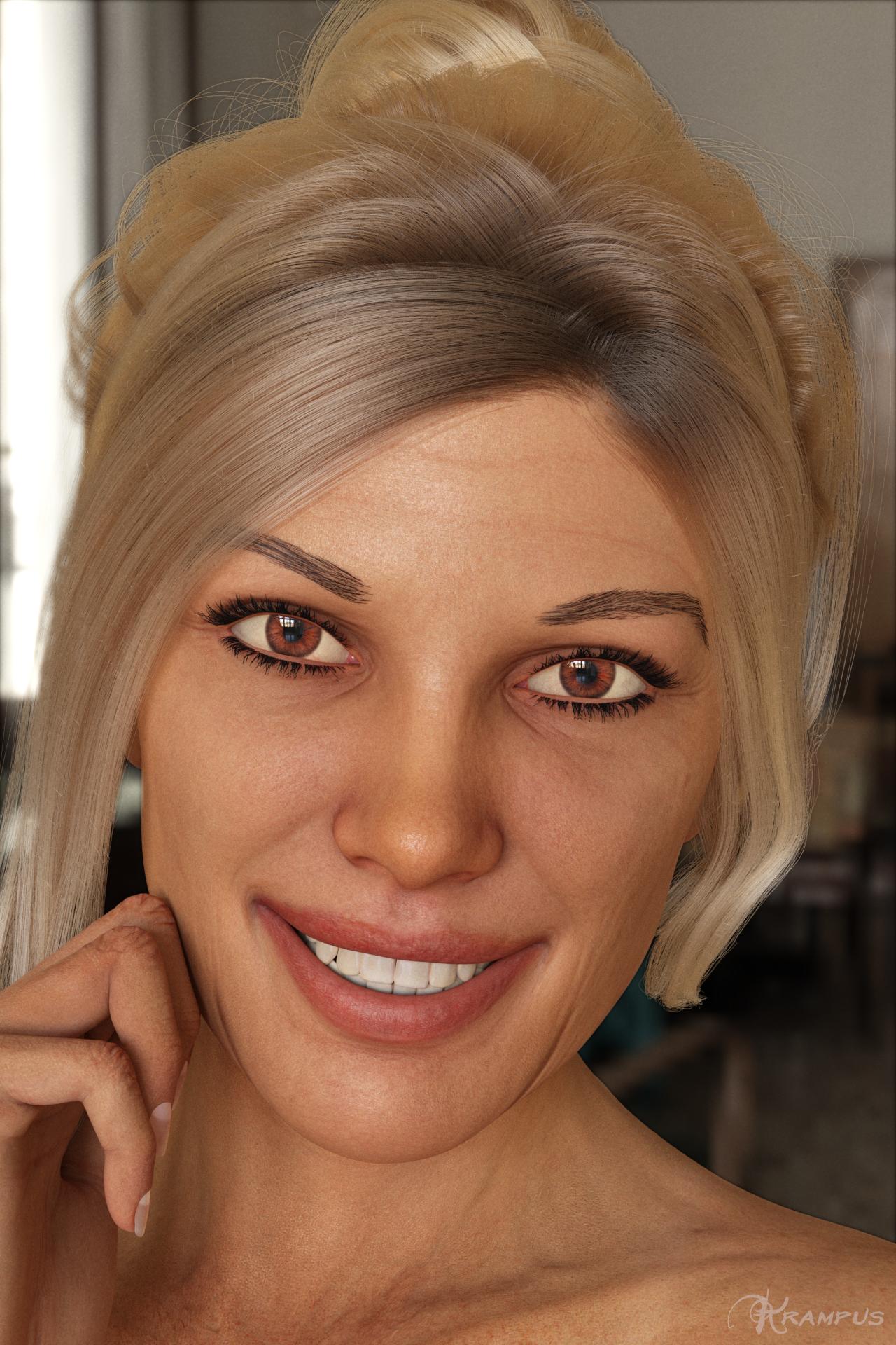 Meanwhile, I used the SSS Math Node that @Krampus has in his Blend Swap link, for the 3-point lighting. It seems to work a bit better, and I modified the lighting as well. This is the result - although I am not quite sure why her eyes look like that.