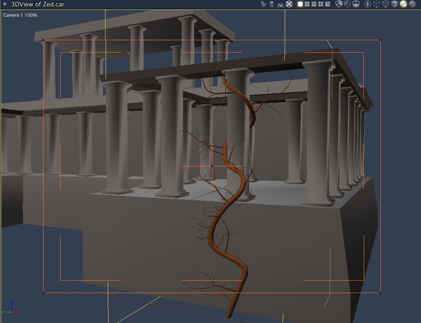 Next I inserted a surface replicator and used my vertex vine as the surface object and limited the surface replicator to the shading domain I had previously set up. I then loaded in my plant and set the random scale to 200% and the random rotation in the Z axis to 360º.