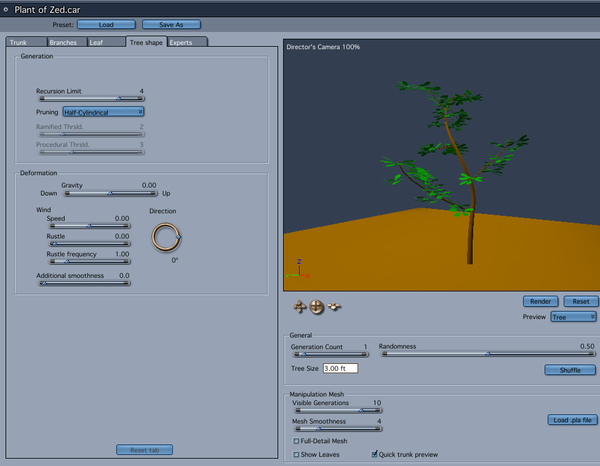 Once that was done, I inserted a plant and tweaked it so that I had a bendy, wispy little plant.