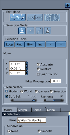 The other method I mentioned is also very easy and isn't really modeling. You're just selecting a poly in the trouble spot and changing the selection behavior from a single polygon to a gradual fall-off of influence the further away from the selection it gets. You're really just translating the position of the polygon, except you have a bit more control. For the longest time that is the only reason I even opened the vertex modeler.