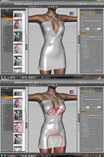 I modelled my clothing based on the basic G2F figure. After the initial rigging with transfer utility, when I turn Victoria 6 body morph dial, indeed my clothing changes according to the morph. But the issue is, I see some unwanted folds, especially under the breasts and around the crotch.