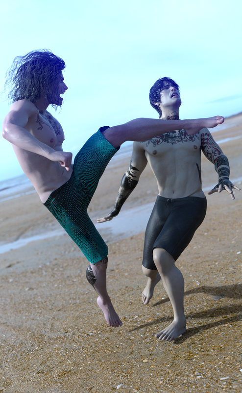 And just thought I would post the cousins doing some competitive sparring down the local beach - Mikhail on the left and Nikolai on the right. If I get the chance I will do another render where the tide has turned in Nikolai's favour.