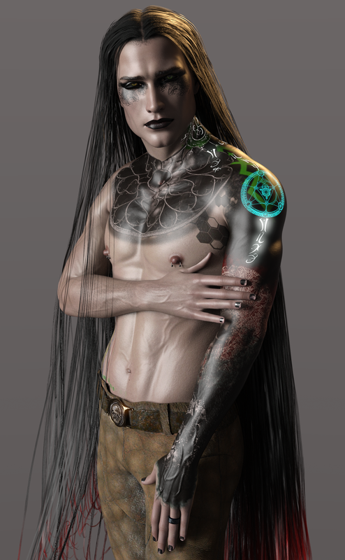 Also loving the emissive tatts. Keep up the great work Dar. Just curious - why did Mikhail not end up with a chest hair option when all other options were covered ? And would the chest hair from your other models work with Mikhail without nmessing up the nipple rings or the tatts ?