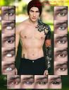 Mikhail comes with Fibermesh brows, arm and lower leg hair, lower abdomen hair (Treasure Trail), two sets of Lash Opacity Maps, several colors to mix/match between the lashes and brows, tattoos drawn in Blacksmith 3D and CS5, three texture based brows with a no brow set for variety. Included with the tattoos is one emissive preset for that magic maker's glow.