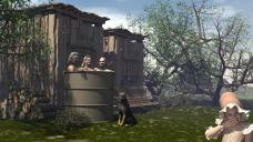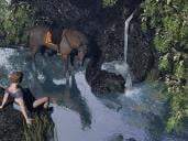 The girl is a version of Genesis with farm clothing. The dragons are the Eastern dragon and the Millenium dragon. The trees are Bryce trees, I think the ones in the coral are by JudyK. Lighting is simple, just the sky and the sun (a bit upped from 100%). Duration of render, just a few minutes.