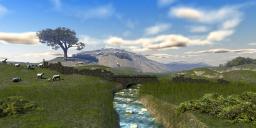 Hansmar...I like the overall look and composition and the sky slab is nice but it does have issues the main one is due to the instancing of the sheep it has thrown the scaling way off