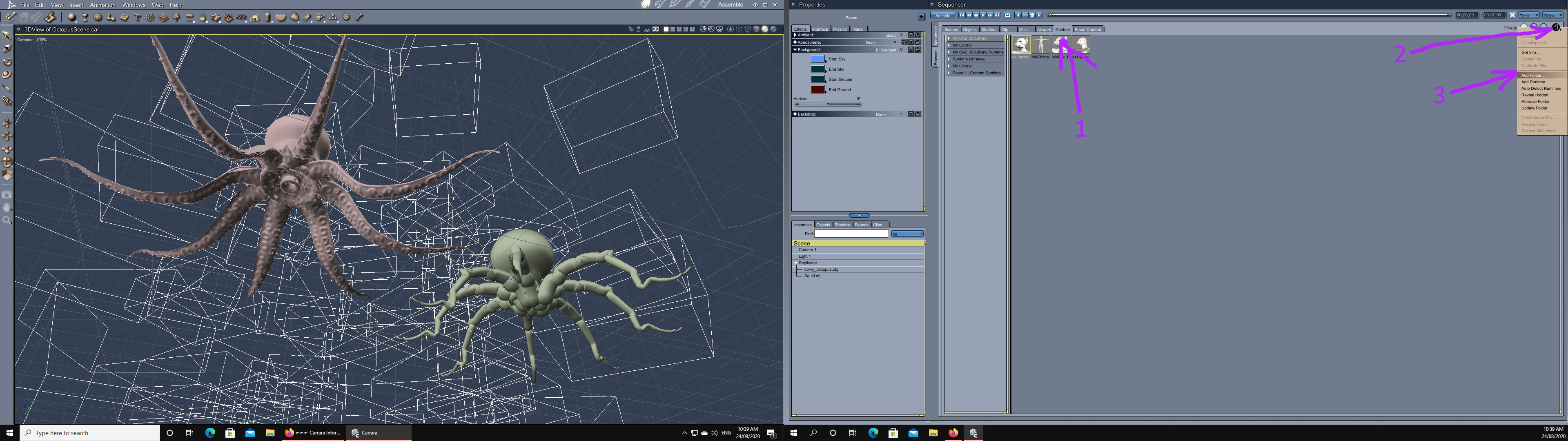 Hopefully, this is not complex. Everything looks like it is loaded properly to me. You just need to learn how to use Carrara correctly.
