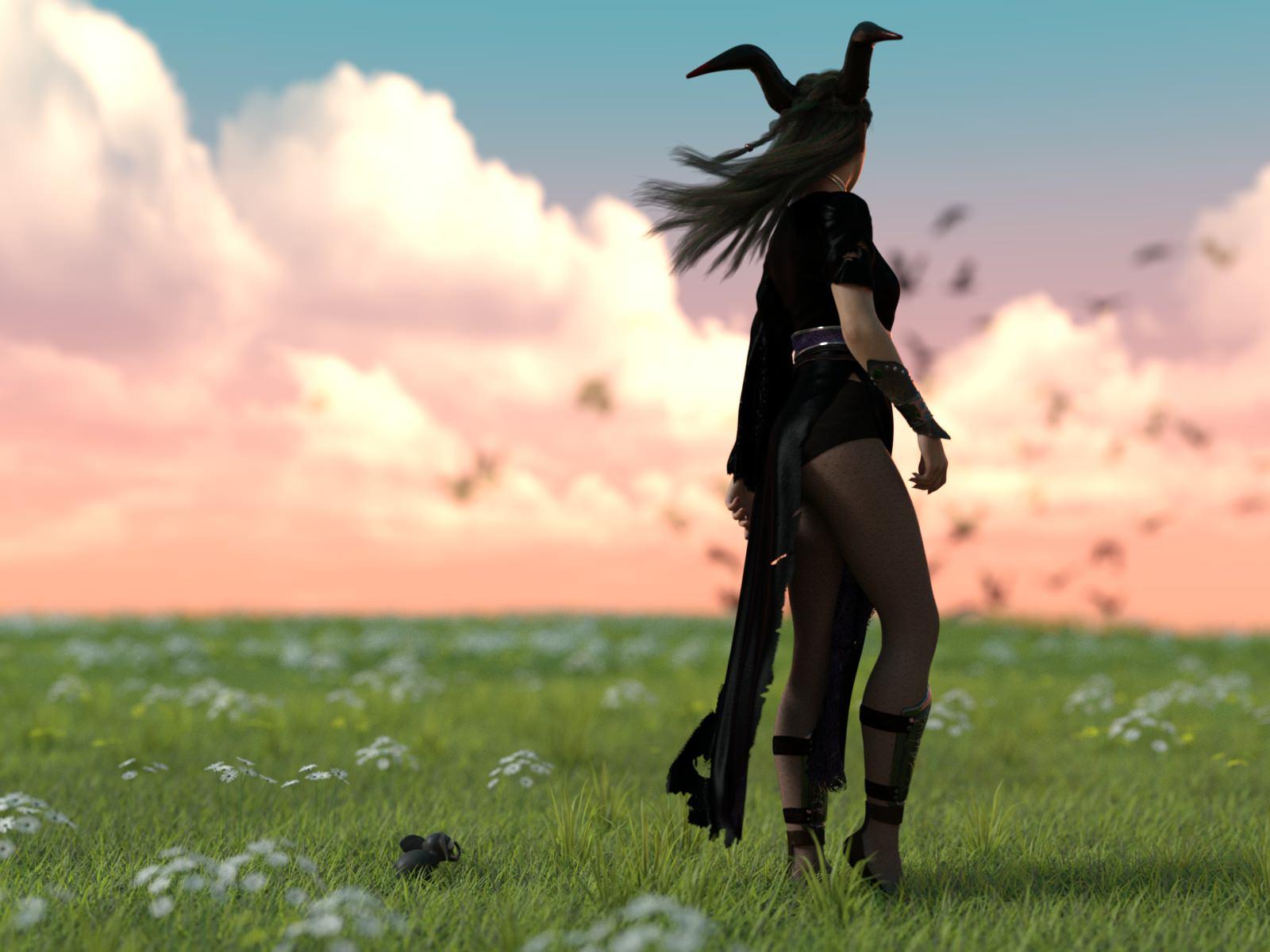 I’ve used the Evelyn Hair in several test renders and I’m still struggling to make up my mind on it. It’s a nice piece, I like the braids, but I don’t use long hairs much.