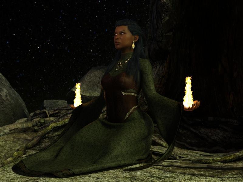 The character in this render is Chantalle, wearing the Vikings textures for the Universal Dress, and making some magic with Marvelous Magic. I did have some issues with some weird bulges forming on the belly of the Universal Dress while simulating (easily fixed by setting Contraction-Expansion Ratio to 95%), but overall these are all lovely and obvious keepers.