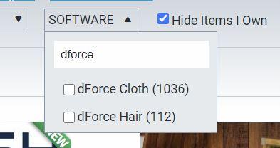 dForce  isn't always written in the name of the product. I've gotten several poofy male outfits, clearly designed to be dforce, which have not mentioned this. I've also had installed  dForce male produts where the name dForce is dropped, making them hard to find. If dForce is part of the name, it should be the same in the product library, but this adjective is dropped.