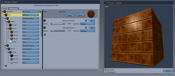 Try the same process with the grout or, "Mortar" shader, and you should end up with a pretty detailed brick wall.