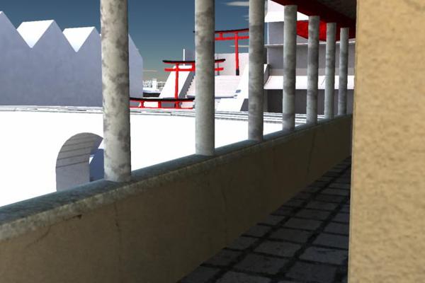 I've split it into a number of shading domains - roof, walls, arches, pillars columns, steps, paths etc and UV mapped it.
