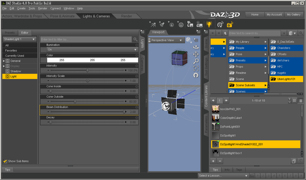 So to start with, Where are these "DzLights". They are also in the Smart tab, somewhere, for this the Content Library is easier.