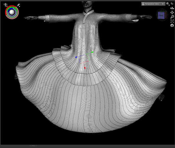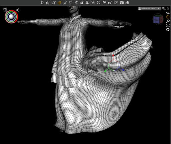 With the dance poses, I was reminded of an idea I had earlier when you showed how the tassels on the head change with gravity. Could you use that method to make the fabric behind the knee fall straight down when the knee is bent? I think it would take a jcm to reverse out the way the back of the knee conforms when the leg is bent.