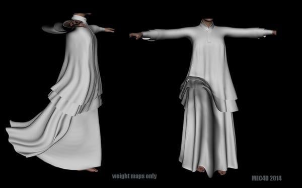I improved the weight maps for better flows .. it looks so much better .. I still wonder why nobody do soft cloth plugin for DS it is the most easy plugin to make and the codes are free in the book , I even saw preview a time ago for that but nobody want to make it happen .. and regarding the hybrid, everything from the legs to pelvis can be mapped as cloth in Poser and it works wonderful .. I really miss this in DS