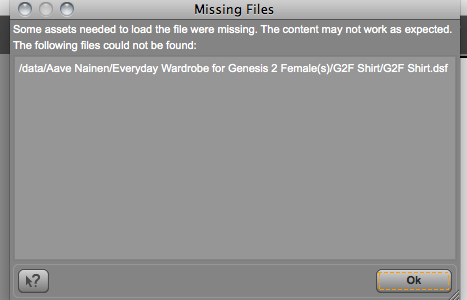 Now I just tried loading the shirt from the Everyday wardrobe and got the alert again. I'm attaching it.