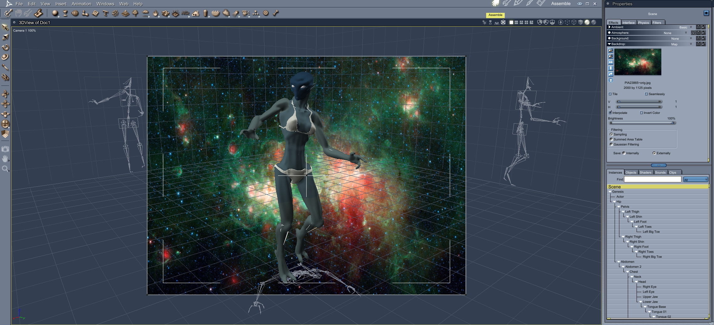 Am using that plugin called DAZ Studio to make Multiplane Cyclorama textures from Howie's Ultra Scenery to use in Carrara. After rendering the Ultra Scenery scene in Iray I use PSP to overlay segments of the render on a Multiplane Cyclorama template.