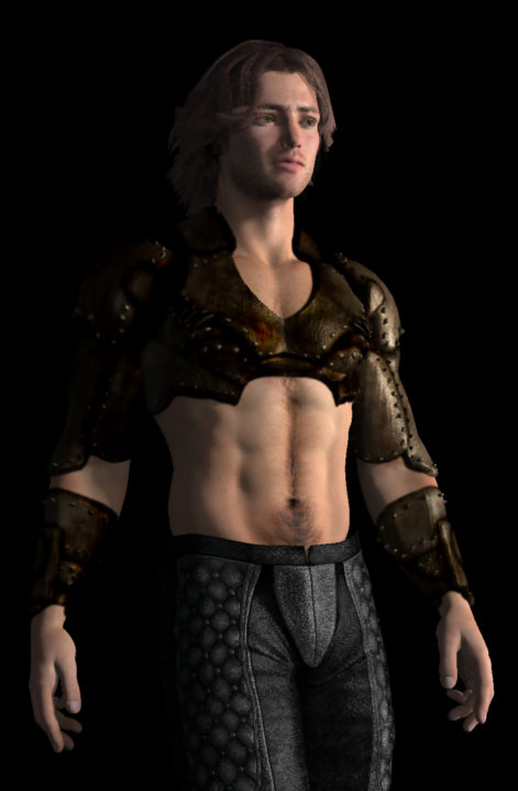 While I was placing stones, I was thinking about using the shaders for the above M4 Tin Man along with a mask to apply armor directly onto my Dartan Character - well... any character actually. So I loaded the displacement map into Howler and built a selection mask for parts of the upper torso and the upper limbs. I ended up making several attempts - and I still want to make changes - both to my custom displacement maps, textures, and the selection masks.
