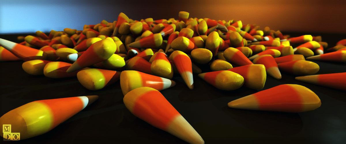 Candy Corn models made in the Vertex Modeler and piled/scattered with physics. Carrara render.