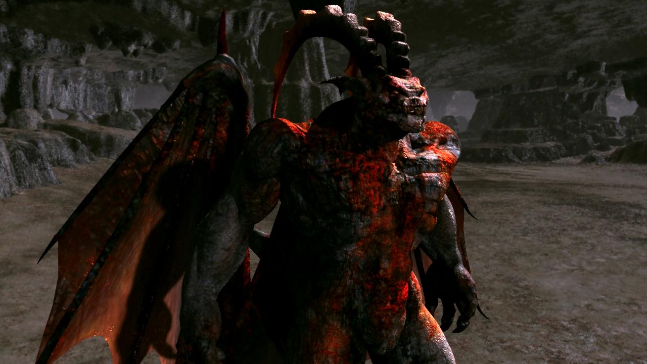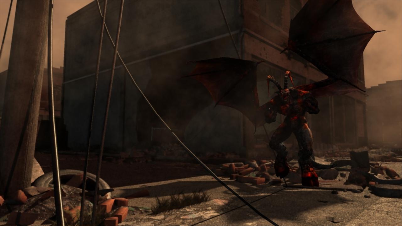 I was just playing around with soft shadows using Distant lights. The Tips on Start up say to keep the radius rather large, so I always did, which really softens those shadows up. But when I lowered it done to around 50 ft, I really liked how the shadows remained perfectly sharp close to the object, and fade to soft as the shadow get further from it... that's what I did with the Nybras Demon above. Before I moved the demon over to where all of that debris lies on the ground, I could really see the effect well - it's a bit hidden among the debris in this position. The wings do a decent job of showing it though.