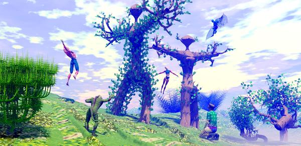 "When I came to a field with some strange trees, I saw a number of weird creatures dancing with two trees that looked like people. Or where they people that looked like trees. Some of the creatures were flying round the 'treepeople'. I could only drop to my knees and look at that incredible sight. Wonder what more fantastic things I will see in these lands!"