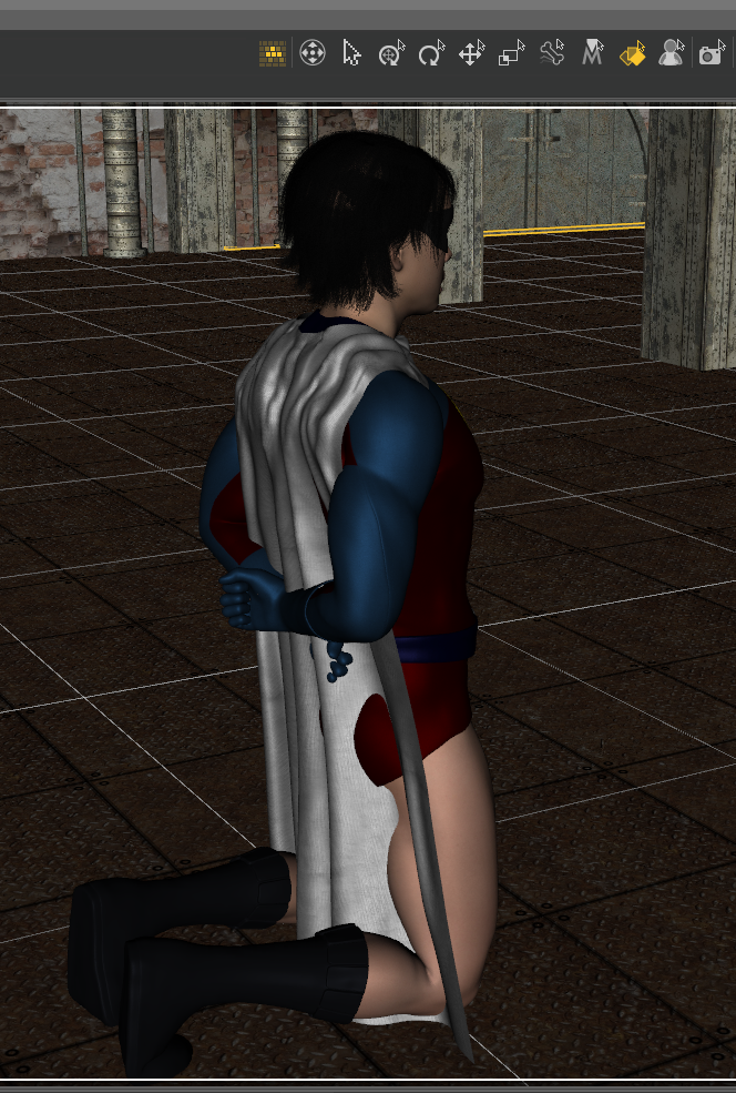 5. If you have Meshgrabber Rotate (store product), you could move the cape so it's clear of the figure and then let dForce drape it.