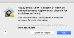 How does one reinstrall all of the applications and content on a New Mac? When I tried to use Daz Central I got a prompt that it can't be installed because Apple can't check it for Malware.