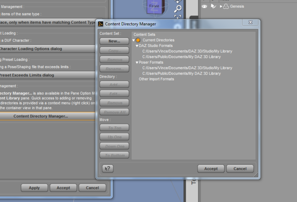1) In DS, Edit > Preferences > Content Library > Content Directory Manager, expand the "DAZ Studio Formats" and "Poser Formats"