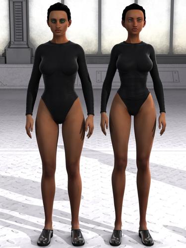Ziva all stock, is on the right, and Ziva with less Aiko6 on the Left (settings in former post). This is also showing the "G-suit 2 HD" as a Leotard. I'll dice up and label the screen-caps after voting in the RRRR contest.