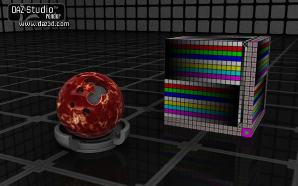 Note that all the DGSE Luxballs are translated by the Luxus AutoConversion. While they turned out very nice, I guess there can be some settings altered to get even better results in LuxRender. The Environment Map in this set was not the best choice. Compared to others I did before this map is nice as an addition but not impressive as the only light source. That has been a cause for a second thought about LuxRender. Daz Studio comes with 3delight, and a collection of basic lights that can be set up as a baseline test chamber setup, that can easily be copied by others to (in a scientific way) duplicate the tests and get consistent results. AKA my ZDG test chamber. Dz Lights, Omni Ober Area Lights (Uber Panels), and UE2.